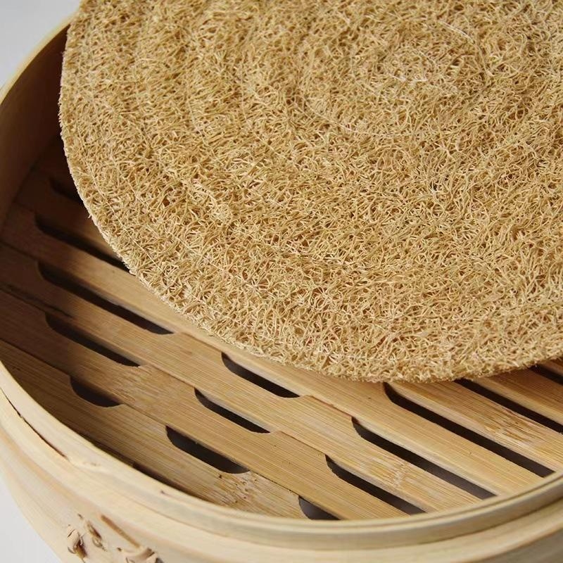 The Wholesale Natural Loofah Steamer Mat is a professional-grade, 100% plant-based solution for traditional and modern steaming. This Wholesale Natural Loofah Steamer Mat features a luminous, porous fiber network that prevents food from sticking while ensuring even steam distribution for superior culinary results.