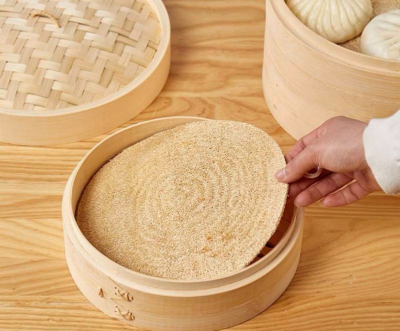 Our Wholesale Natural Loofah Steamer Mat is a breakthrough in sustainable kitchenware, designed to replace disposable parchment paper and silicone liners. Crafted from premium Vietnamese loofah, these mats provide a natural non-stick surface that is ideal for dim sum, dumplings, and vegetables. This Wholesale Natural Loofah Steamer Mat is unbleached and chemical-free, ensuring that no toxins leach into food at high temperatures.
